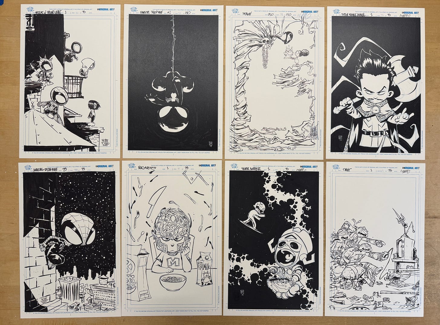 We have NEVER had a sale like this on these unique prints. If you are new here, UnORIGINAL ART prints show the printed blue line detail with Skottie’s line work on top. They are printed on heavy weight board and truly look and feel like they could be originals- real conversation pieces. Each one has a limited edition print run and is individually hand numbered and signed by Skottie. 20 different UnOriginals to pick from.