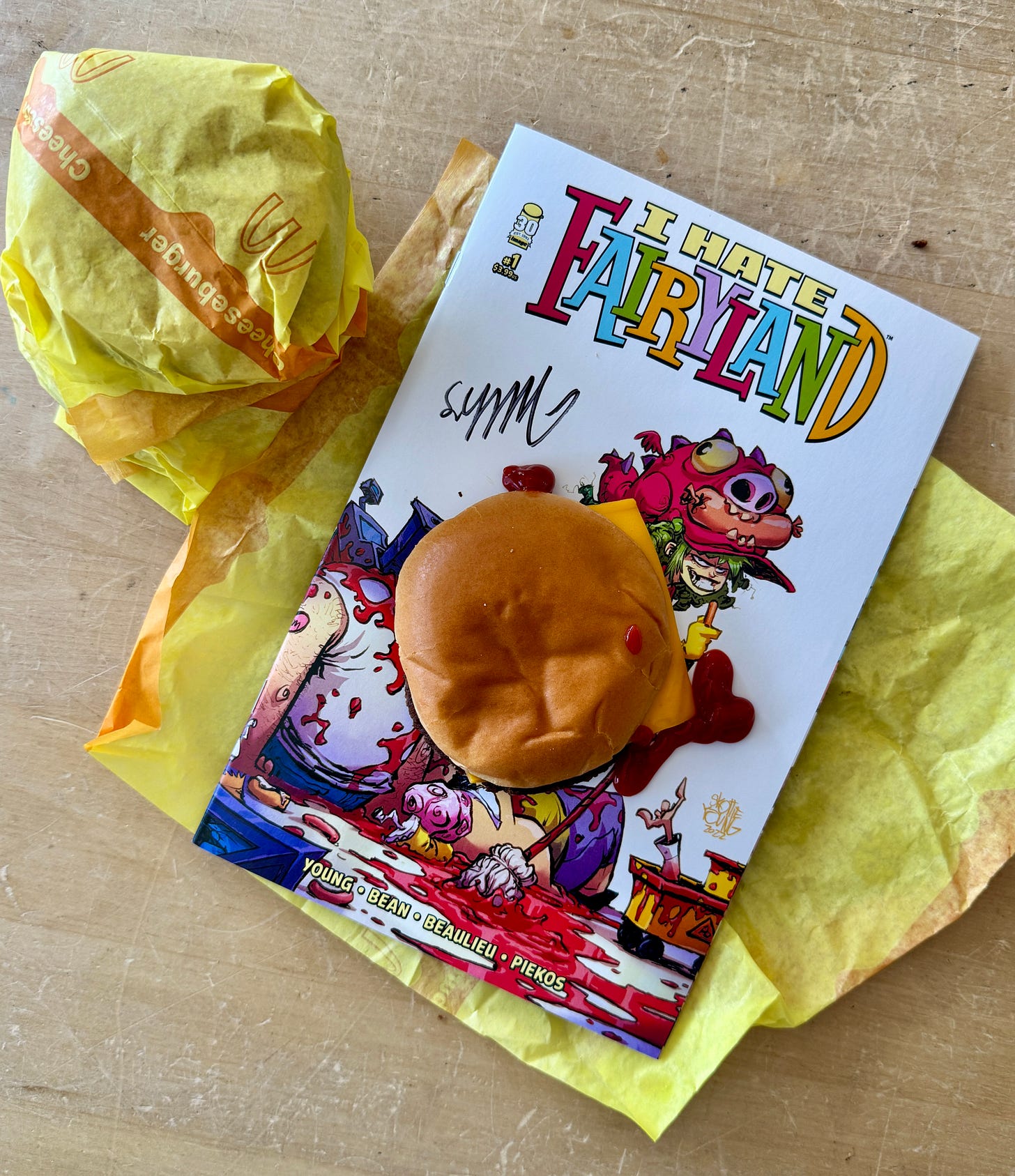 That’s brilliant, the good news is, pretty sure all of the ingredients of a McD’s cheeseburger are already archival in nature, guaranteed to not rot & ruin said ketchup signed comic!! I’m onboard!!