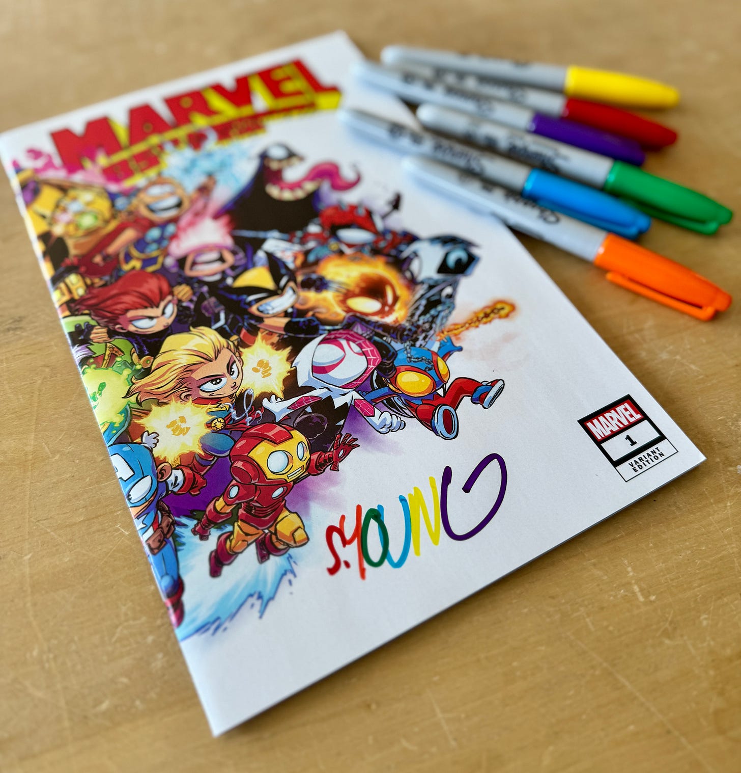 The Homage is for the comic fan that likes Skottie but also LOVES Todd McFarlane, J. Scott Campbell, Adam Hughes or any creator of your choosing. It’s the best of all worlds! Allow Skottie to pay tribute to any of comic legend by signing their names to his books.