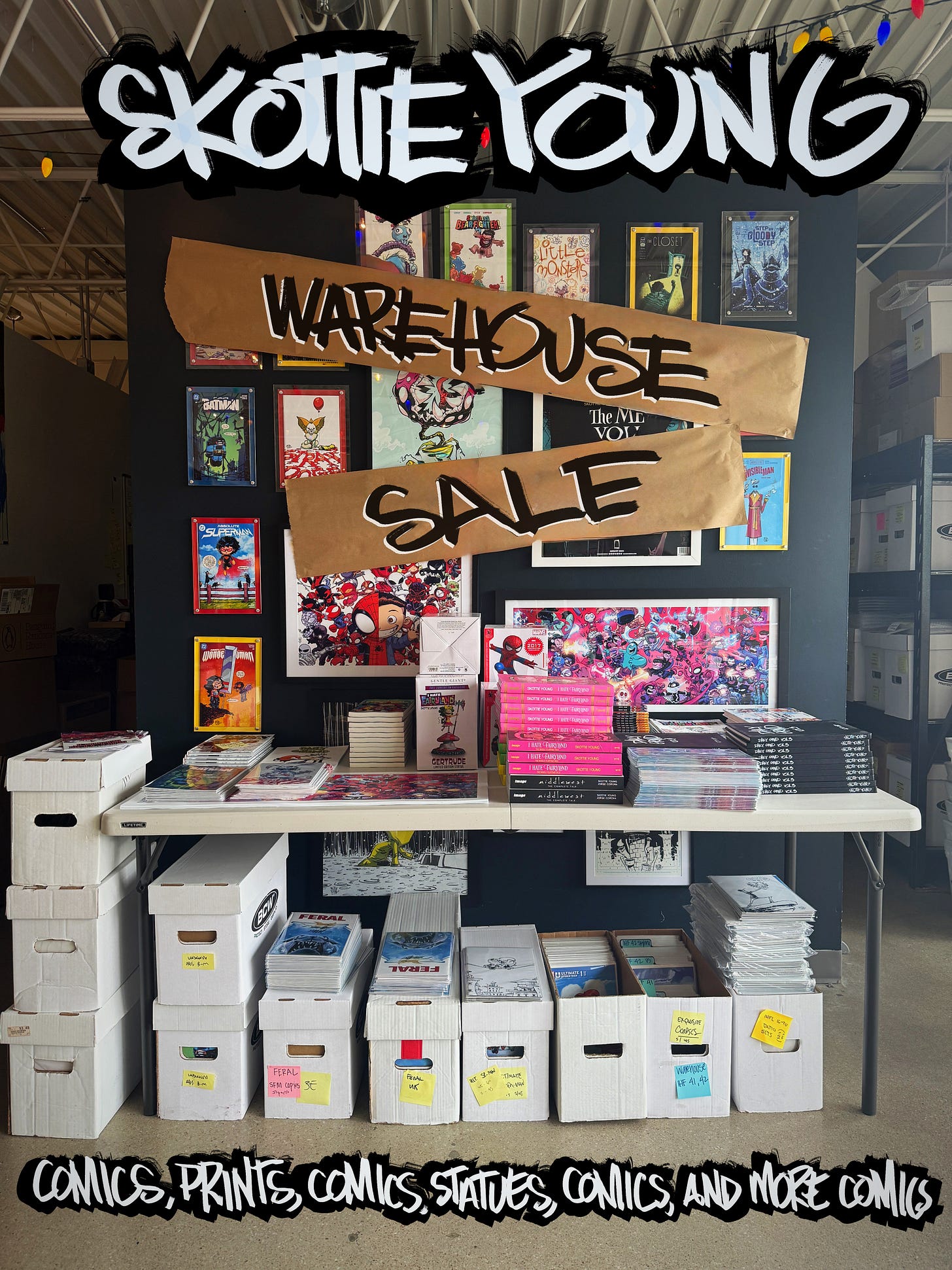 Hello! Megan here. Welcome to one of the most anticipated newsletters we send out- THE WAREHOUSE SALE is happening this WEDNESDAY, JANUARY 14 at 10am CST! We do periodically add things to The Warehouse Sale but this is a HUGE drop. You’re going to find prints and comics from the archives, some scratch and dent books that didn’t pass our rigorous 21 point inspection (that’s made up) and some amazing finds Skottie uncovered in an old storage unit. I’ll show you some of what we have but there will be MORE in the sale.