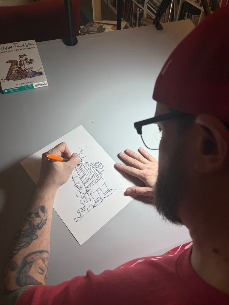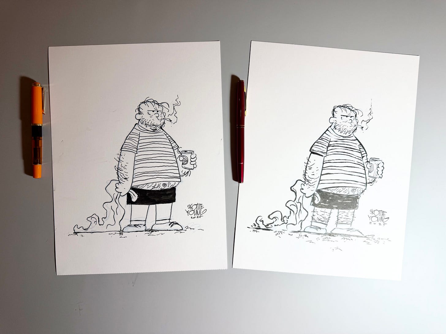 I decided to try and ink it with a new fountain pen I just got. It’s the same kind of pen Sergio Aragones used to ink GROO. Schulz used a nib or fountain pen as well so I thought this would be a perfect piece to practice it on.