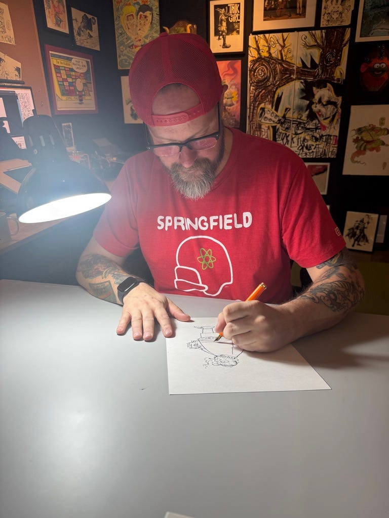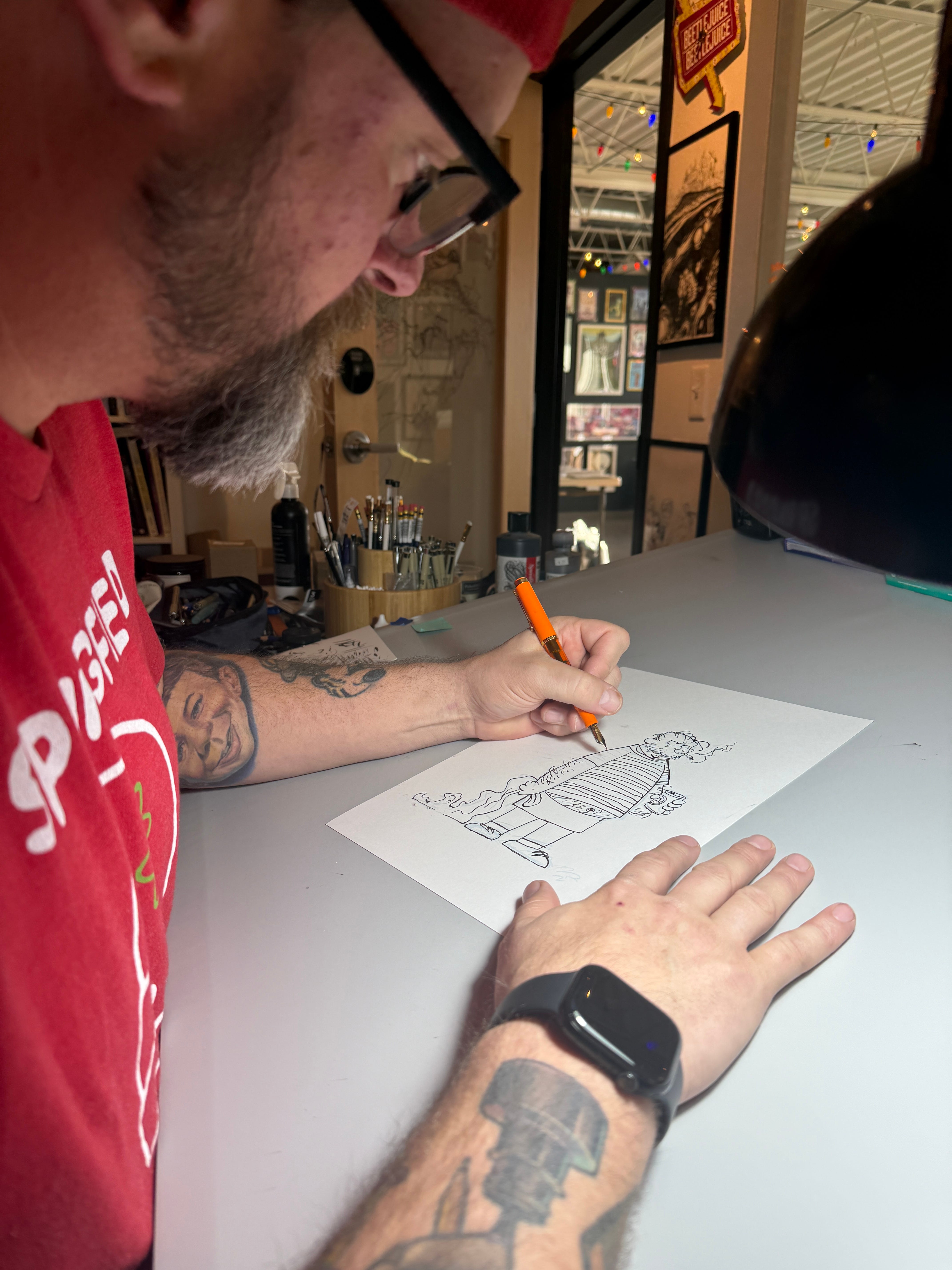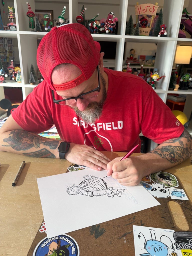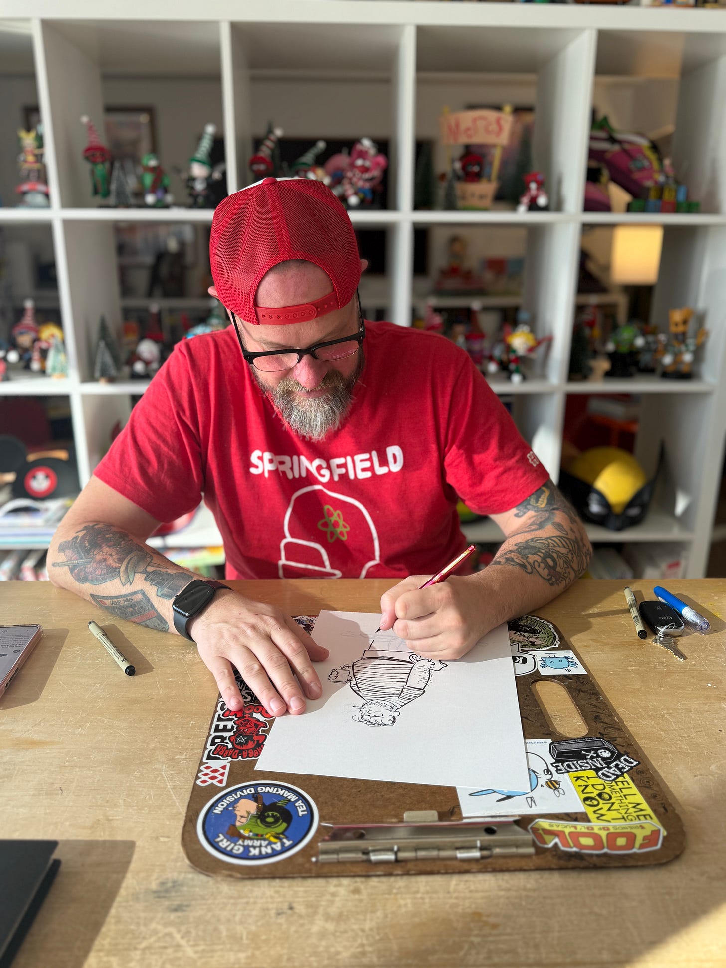 Next up, we have a really cool auction going on at SkottieYoung.com right now. Back in 2019 Marvel did a direct to consumer drop called Marvel Made and the first one was all me baby! It was an exclusive enamel pin set, a journal, a few exclusive comics and packaged in a full blown Skottie Young art box! We have a few laying around the studio and Megan NOT SO SUBTLY leaves one of the boxes out on the main studio desk next to 30 or 40 Pocsa paint markers and is all like “If you feel like drawing on this, you can.” So I did and now it’s up for auction at my site!