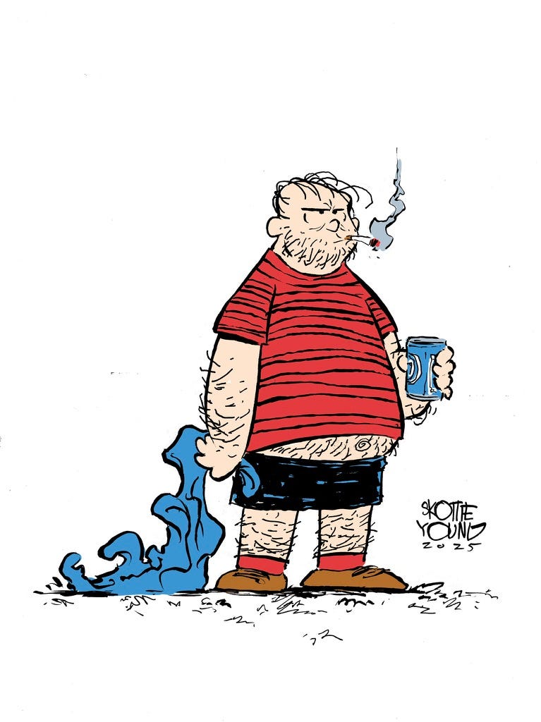 Let’s get things kicked off with Daily Sketches and a peek behind the curtain. I’ve been using a list of one word prompts to keep me inspired and on task. The word BLANKET came up and I instantly knew I was going to draw Linus from The Peanuts. My youngest son was actually going to be named Linus until 3 months before he was born. Changed it last minute but I still love that name. For some reason I love the idea of aged comic strip and cartoon characters. Like where are these child stars now. So I worked up my version of Linus. I sketched this on my iPad and then printed it out to ink it.
