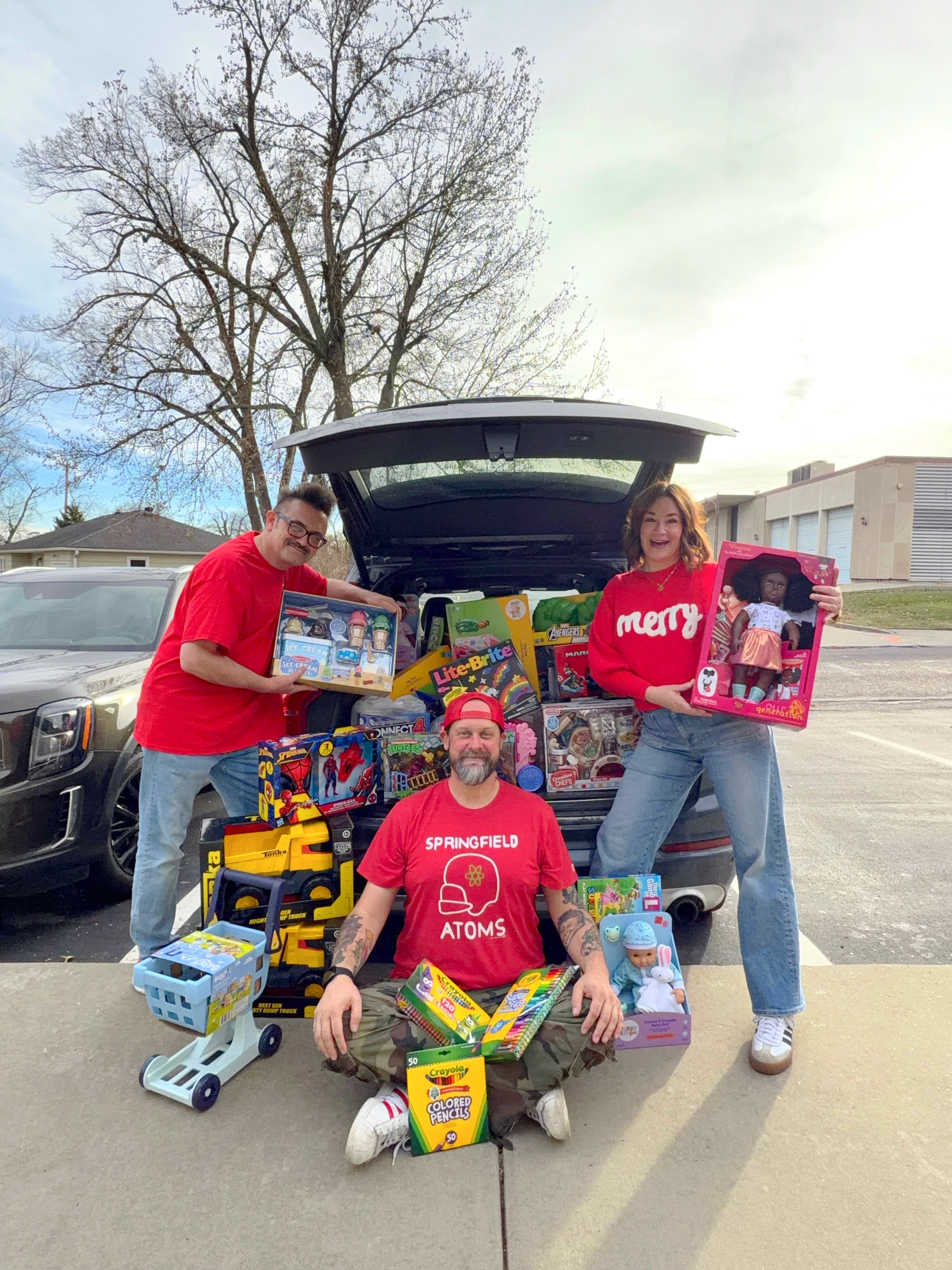Last week we told you all that all precedes from one of my Daily Sketches would go to Toys for Tots so we made a Stupid Fresh Mess of the toy isles in Kansas City and took them to the the local drop off site! And no, we didn’t plan the whole RED SHIRT situation, but we weren’t mad at it.